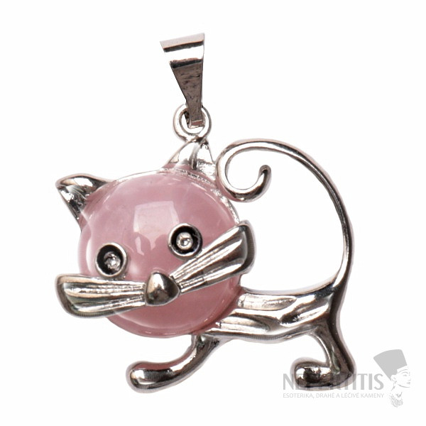 Attractive pendant with rose gold in the shape of a charming cat, a symbol of courage. The head of the cat is made of rosewood, the size is approx. 1.7 cm, the size of the pendant: height approx. 2.8 cm (including the hanging eye) x approx. 3 cm. The metal parts are made of jewelry metal. An unmissable and cute piece of jewelry that will really charm everyone. Illustrative image , individual pendants differ significantly from it mainly in color shade, structure and pattern of the stone.