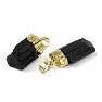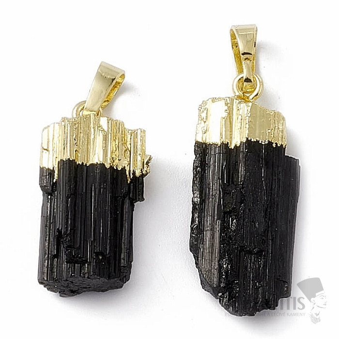 Pendant made of raw black tourmaline - skoryl with a decorative metal handle. Tourmaline has been considered for centuries as a unique stone that never has an adverse effect, works for the benefit of its owner and brings him joy. People wear it as a talisman, which is believed to absorb negative vibrations, remove stress, anger, fear, is a protective shaman's stone. It is further stated that tourmaline can be a stone that aids understanding of oneself and others, increases self-confidence, independence and helps to gain insight into upsetting situations. The length of the pendant is approx. 3.3 cm including the hanging eyes, the metal parts are made of gold-colored base metal. Illustrative image , individual pendants may differ from it mainly in the size and structure of the stone. However, you will always receive a pendant of comparable quality.