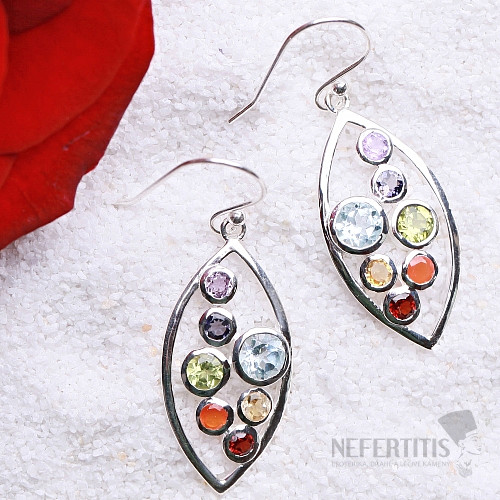 Silver earrings with precious stones. Ag 925. In this piece of jewelry from our own Nefertitis jewelry collection, the gemstones are arranged by color according to the individual chakras in our body. From the Root to… more »