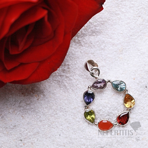Silver chakra pendant with precious stones. Ag 925. In this piece of jewelry from our own Nefertitis jewelry collection , the gemstones are arranged by color according to the individual chakras in our body. From the… more »