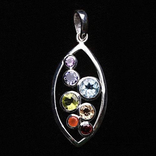 Silver pendant with precious stones. Ag 925. In this piece of jewelry from our own Nefertitis jewelry collection , the gemstones are arranged by color according to the individual chakras in our body. From the Root to… more »