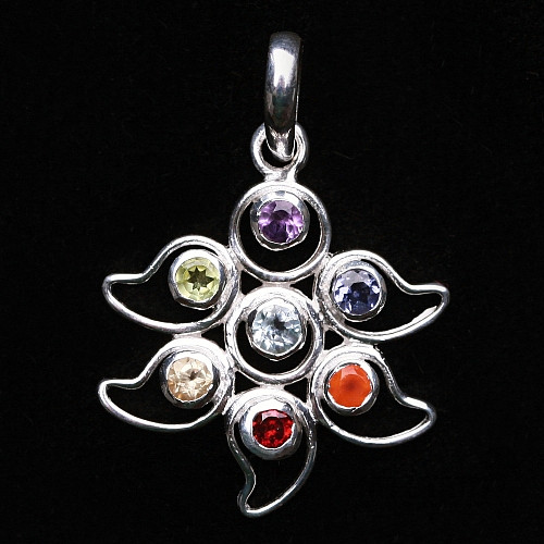 Silver chakra pendant with precious stones. Ag 925.