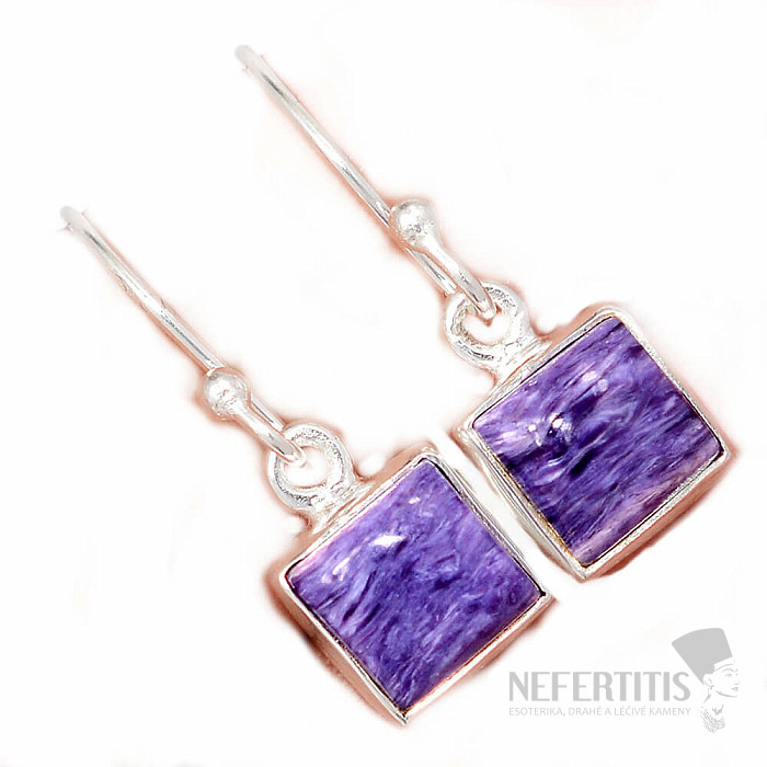 Distinctive silver earrings made of excellent quality charoite. Ag 925. The beautifully purple-colored charoite will enchant you not only with its silky shine, but also with the transformation of the pattern in the changing light. The stated weight is for the entire pair. You are purchasing the jewelry pictured directly.