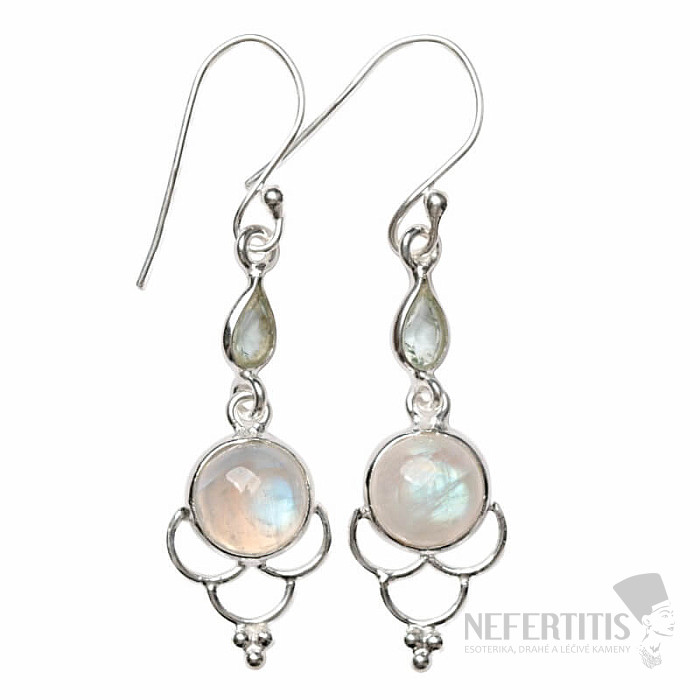 Attractive silver designer earrings with rainbow moonstone and cut topaz. Ag 925. The earrings are unmissable not only because of their attractive shape, but especially because of their exceptionally beautiful and distinctive "rainbow play". The stated weight is for the entire pair. You are purchasing the pair pictured.