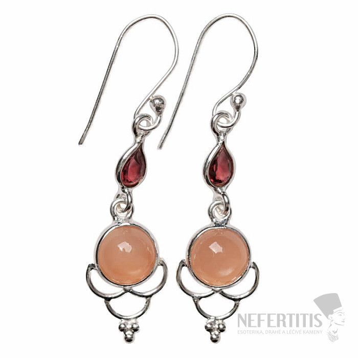 Attractive silver designer earrings with orange moonstone and cut garnet. Ag 925. The earrings will enchant you at first sight with the silky soft shimmer on the surface of the first-class moonstone. The stated weight is for the entire pair. You are purchasing the pair pictured.