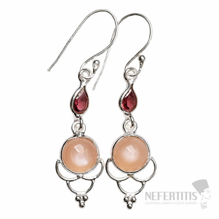 Attractive silver designer earrings with orange moonstone and cut garnet. Ag 925. The earrings will enchant you at first sight with the silky soft shimmer on the surface of the first-class moonstone. The stated weight is for the entire pair. You are purchasing the pair pictured.