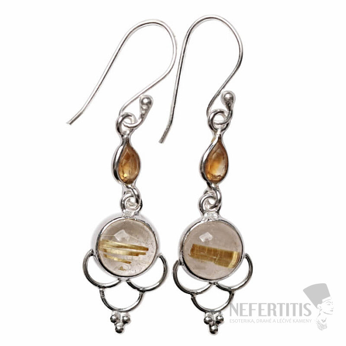 Attractive silver designer earrings with sagenite and cut citrine. Sagenite literally shines with golden inclusions of "golden" rutile like the sun in the summer sky. A very optimistic and good mood-giving piece of jewelry from the very sight. Ag 925. The stated weight is for the entire pair. You are purchasing the pair pictured.