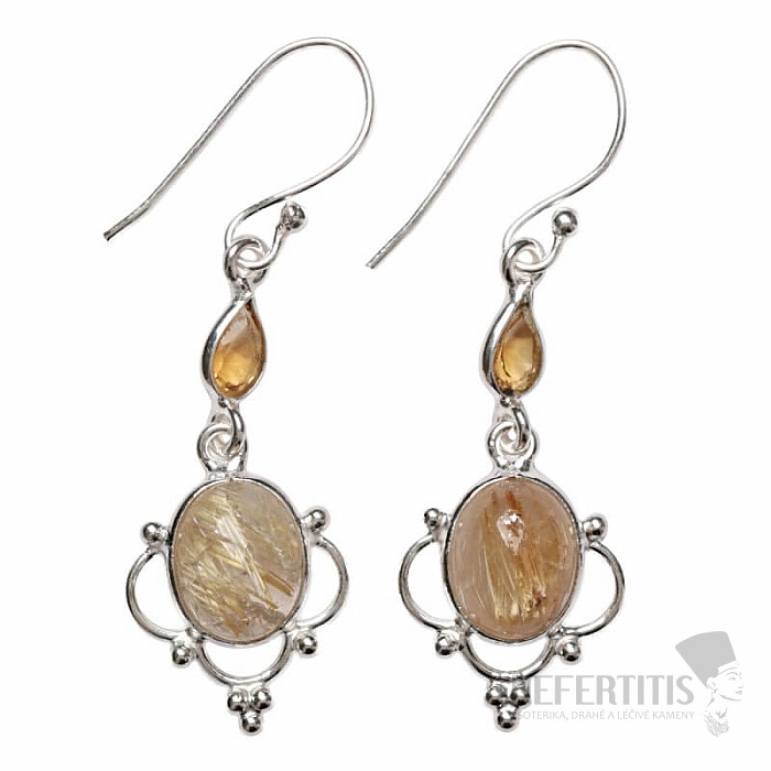 Attractive silver designer earrings with sagenite and cut citrine. Sagenite literally shines with golden inclusions of "golden" rutile like the sun in the summer sky. A very optimistic and good mood-giving piece of jewelry from the very sight. Ag 925. The stated weight is for the entire pair. You are purchasing the pair pictured.