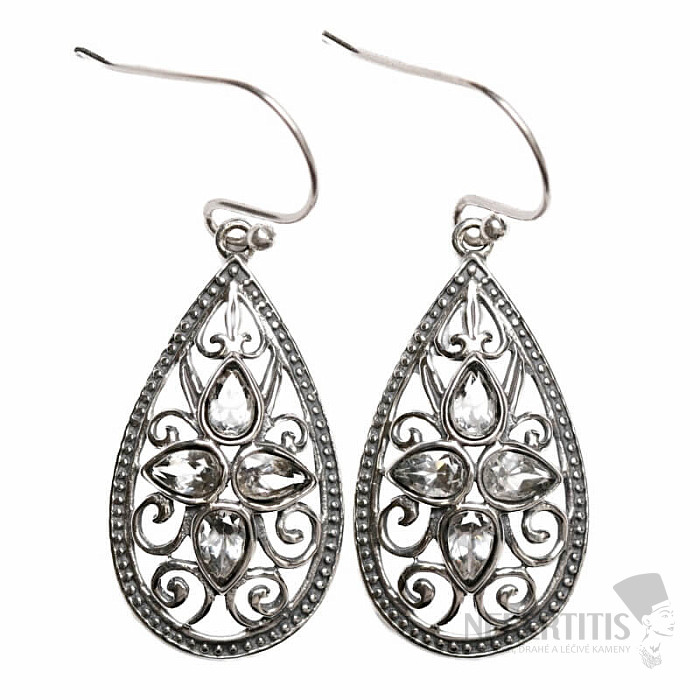 Attractive silver designer earrings with natural white faceted topazes. Ag 925. Thanks to the cut surfaces, the reflected light gives it a diamond-like sparkling appearance. The stated weight is for the entire pair. You are purchasing the jewelry shown directly.