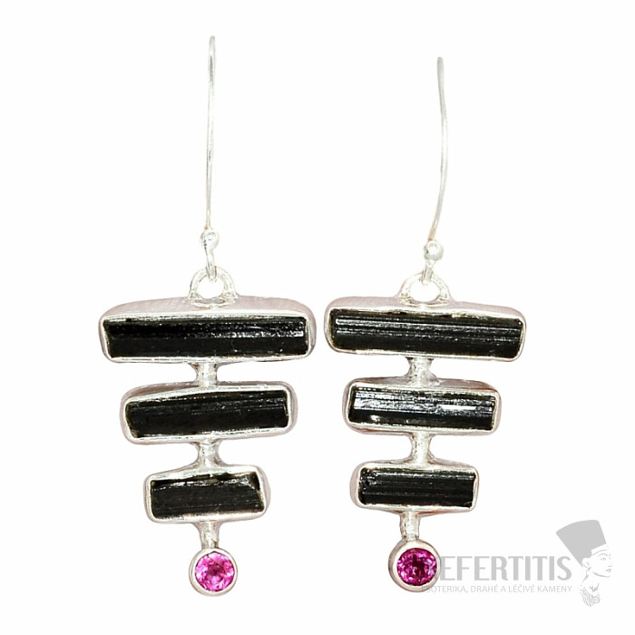 Designer earrings with black tourmalines, silver Ag 925 E1