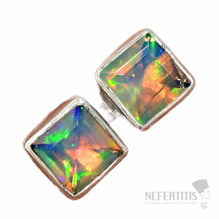 Ethiopian opal cut earrings stones silver Ag 925 E158
