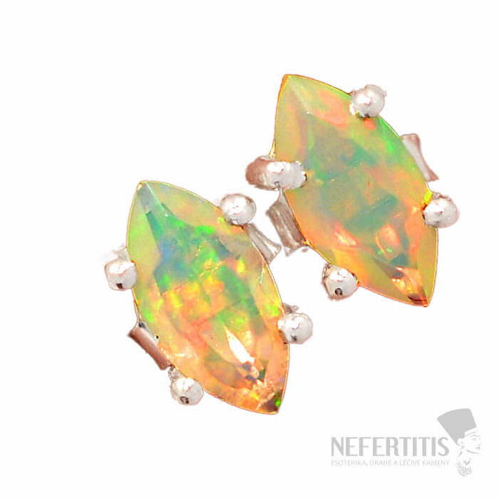 Charming silver earrings with cut Ethiopian opal with a beautiful play of colors, especially green, orange and red. Ag 925. Impressive and elegant jewelry, evoking joy and feelings of harmony from the look. Ethiopian opals, compared to Australian opals, literally burst with neon-bright reflections of colors. Although they don't look like it at first glance, the fireworks of colors that burst from the opal in these earrings with every light hit will enchant not only you, but your entire surroundings. The stated weight is for the entire pair. You are purchasing the pair pictured.