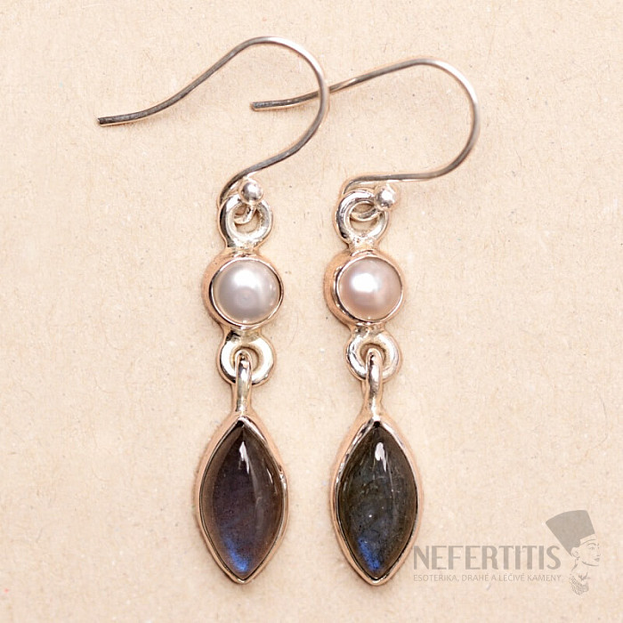 Beautiful silver earrings with labradorites with a distinctive play of colors, in which the bright blue color magically shines when the light hits it, and pearls. Ag 925. The stated weight is for the entire pair. You are purchasing the jewelry pictured directly.