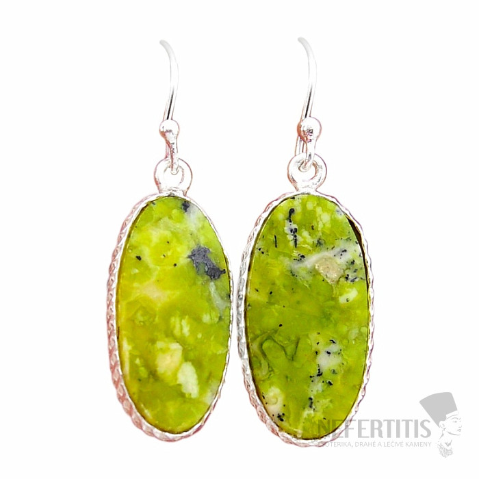 Elegant and distinctive silver earrings with beautiful lizardite. Ag 925. The stated weight is for the entire pair. You are purchasing the pair pictured.