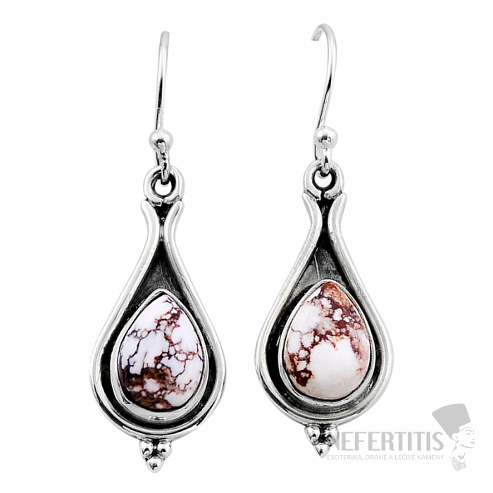 Silver earrings with Wild horse magnesite, found in Arizona. Ag 925. This type of magnesite has a unique, unmistakable pattern - beautiful marbling in white magnesite. The stated weight is for the entire pair. You are purchasing the jewelry pictured.