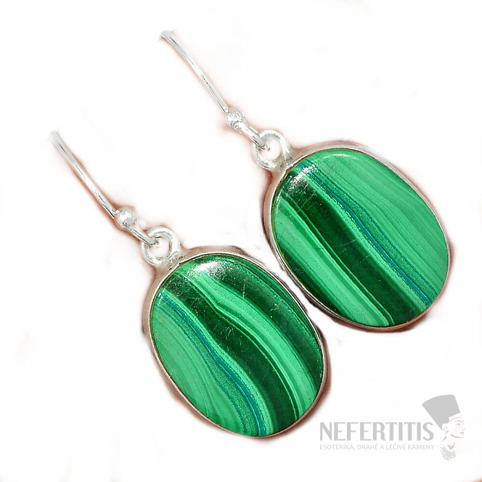 Distinctive silver earrings made of malachite. Ag 925. Thanks to the typical green color and pattern of this beautiful stone, the earrings are an unusual and distinctive accessory for various occasions. You are purchasing the pair shown directly. The weight stated is for the entire pair.