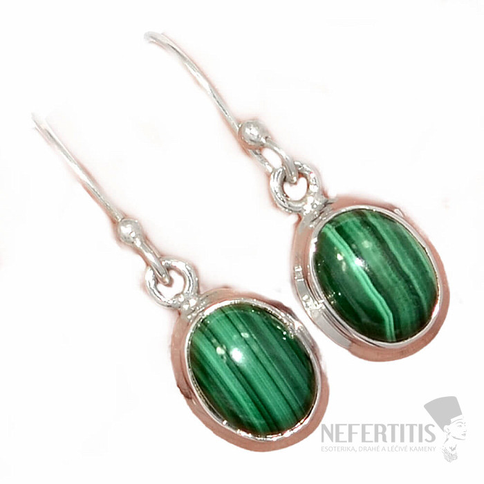 Distinctive silver earrings made of malachite. Ag 925. Thanks to the typical green color and pattern of this beautiful stone, the earrings are an unusual and distinctive accessory for various occasions. You are purchasing the pair shown directly. The weight stated is for the entire pair.