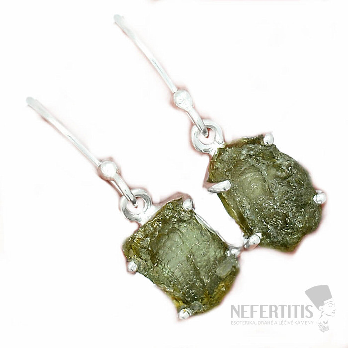 Silver earrings with moldavite. Ag 925. Vltavín is considered a talisman of good luck. You are buying the pair shown directly. The stated weight is for the whole pair. Vltavín (Moldavite) is a glass of tectical origin… more »