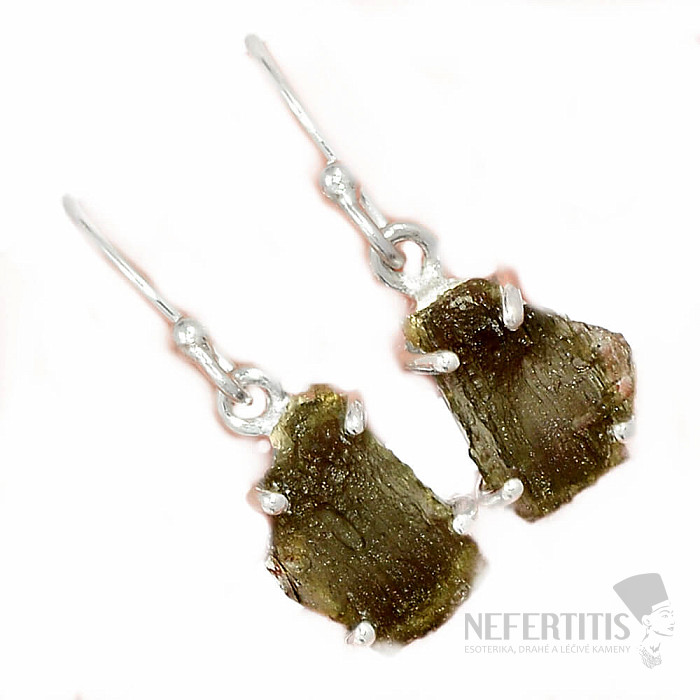 Silver earrings with moldavite. Ag 925. Vltavín is considered a talisman of good luck. You are buying the pair shown directly. The stated weight is for the whole pair. Vltavín (Moldavite) is a glass of tectical origin… more »