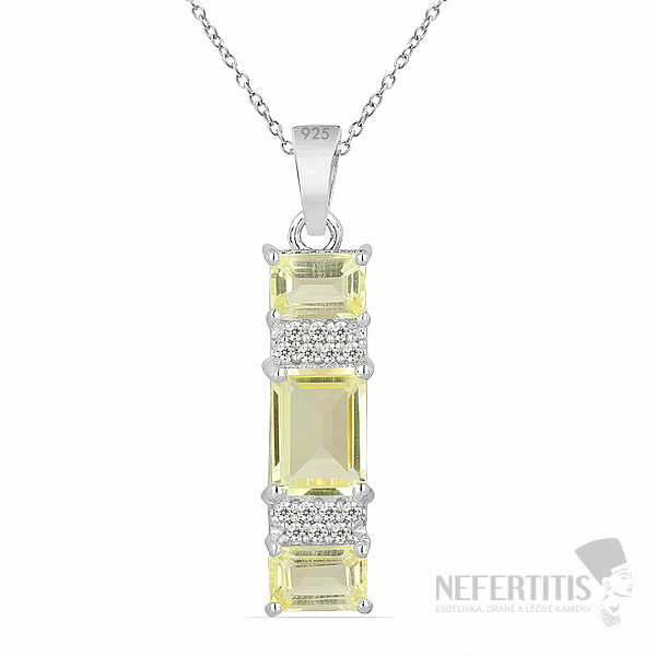 Exclusive silver pendant from the Nefertitis design line with cut natural Lemon topazes. The topazes are complemented by cubic zircons for an unmistakable shimmering look. The stones are set in rhodium-plated silver , the surface of which resembles the appearance of white gold, so the pendant creates a luxurious impression. Rhodium-plated silver is less prone to surface oxidation (blackening). A beautiful glittering piece of jewelry with a clear stone of jewelery quality, the beauty of which is emphasized by the impact of light on the individual cut surfaces, suitable for various occasions. We deliver jewelry in a standard paper gift box. Illustrative illustration.