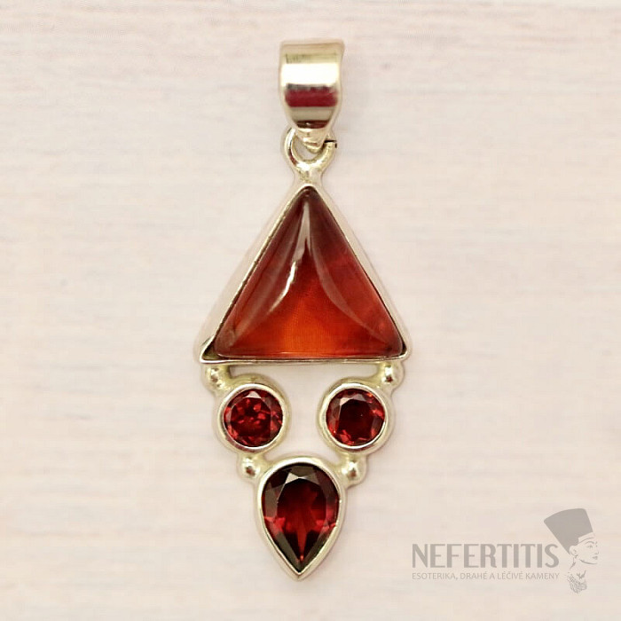 Silver pendant with beautiful honey-colored Baltic amber and cut garnets. Ag 925. A distinctive and truly eye-catching pendant. You are purchasing the exact piece of jewelry pictured.