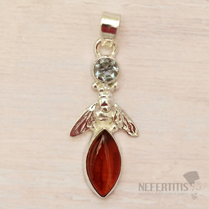 Silver pendant with beautiful honey-colored Baltic amber and cut topaz. Ag 925. A distinctive and truly eye-catching pendant. You are purchasing the exact piece of jewelry pictured.