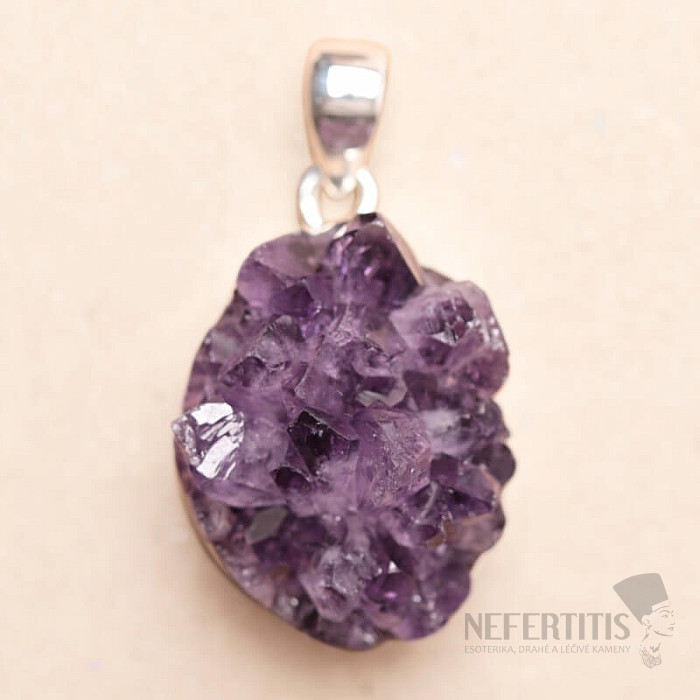 Charming silver pendant with a druzy of deep purple natural amethyst . Silver jewelry with a druzy of amethyst is quite rare on the market, we highly recommend this pendant to all amethyst lovers. The druzy has a beautiful shape and perfectly shaped crystals with an almost uniform purple color. Ag 925. You are buying the jewelry shown directly.
