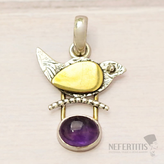 Beautiful silver, partially gold-plated, pendant with amethyst cabochon. Ag 925. You are purchasing the jewelry pictured directly.