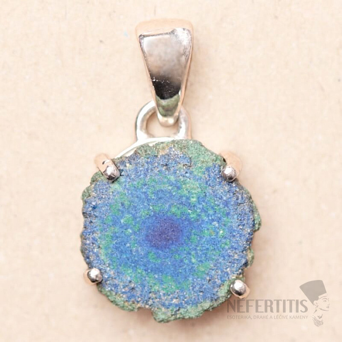 Azurite in malachite stalactite cut pendant silver Ag 925 P20