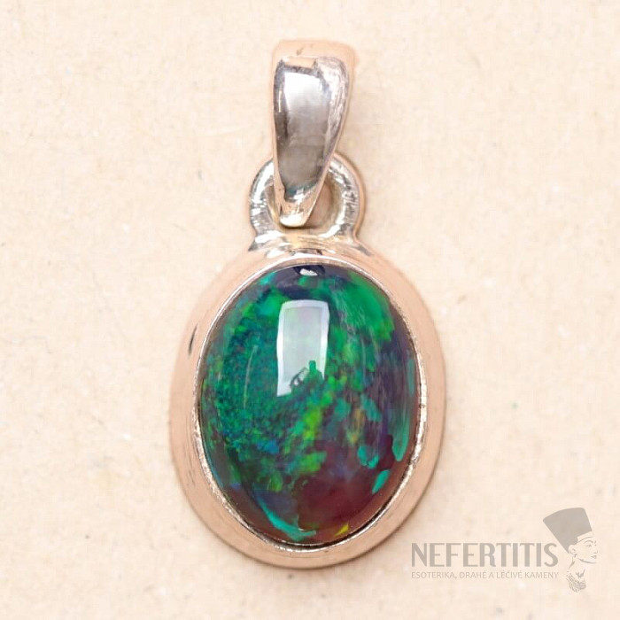 Attractive silver pendant with a cabochon of rare black opal with a beautiful play of colors in a deep black stone. Ag 925. Chalama opal is a rare black variant of Australian opals and comes from the area of the northwestern town known as Lightning Ridge in Australia. An exceptionally beautiful and unusual piece of jewelry. You are purchasing the jewelry pictured.