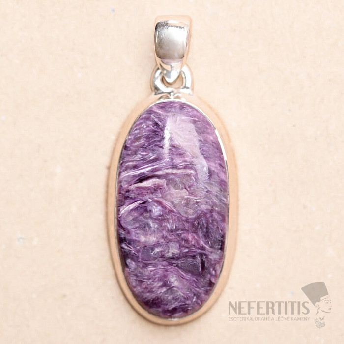 Silver pendant with excellent quality charoite. The beautifully purple-colored charoite will enchant you not only with its silky shine, but also with the transformation of the drawing in the changing light. Ag 925. You are purchasing the jewelry pictured.
