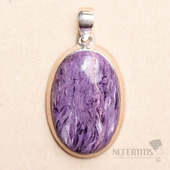 Silver pendant with excellent quality charoite. The beautifully purple-colored charoite will enchant you not only with its silky shine, but also with the transformation of the drawing in the changing light. Ag 925. You are purchasing the jewelry pictured.