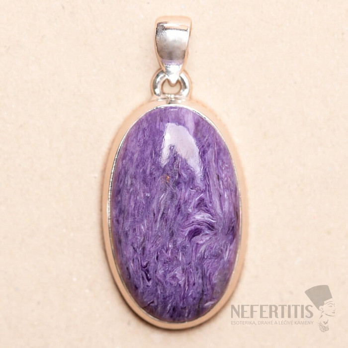 Silver pendant with excellent quality charoite. The beautifully purple-colored charoite will enchant you not only with its silky shine, but also with the transformation of the drawing in the changing light. Ag 925. You are purchasing the jewelry pictured.