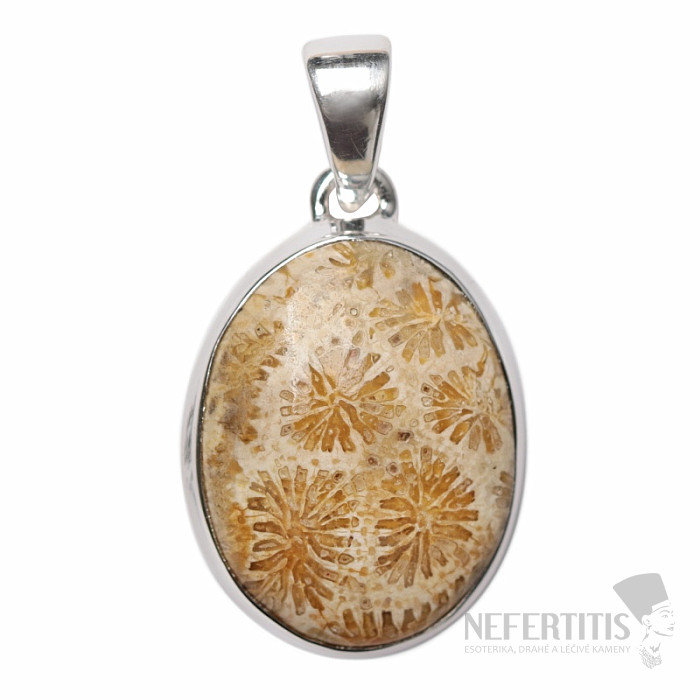 Coral fossil Indonesian pendant silver Ag 925 P472