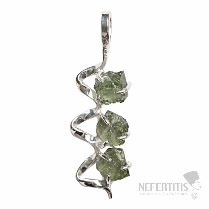 Beautiful designer silver pendant with moldavite. Ag 925. Moldavite is considered a lucky talisman. You are purchasing the exact piece of jewelry pictured. Moldavite is a glass of tectonic origin, which was formed by… more »