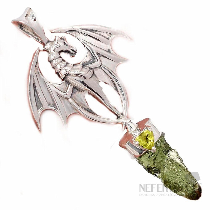 Beautiful designer silver pendant with moldavite and cut olivine. Ag 925. Moldavite is considered a lucky talisman. You are purchasing the jewelry pictured.