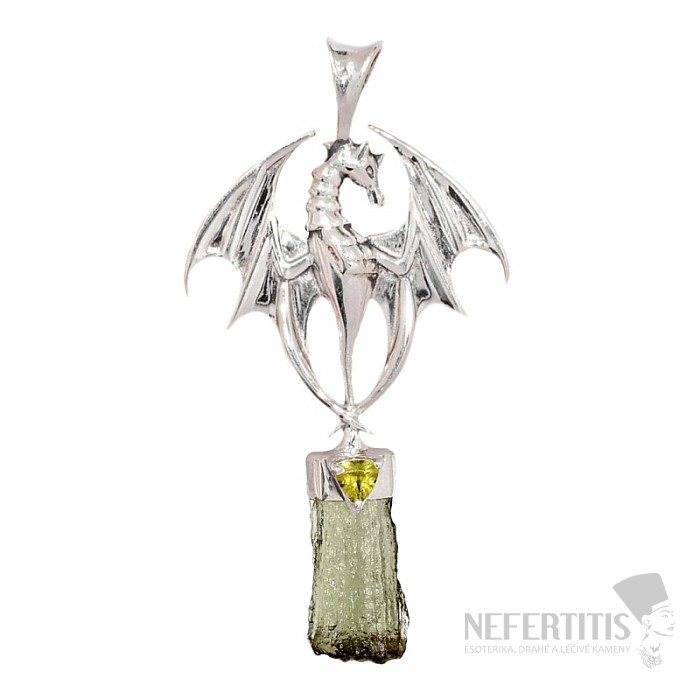 Beautiful designer silver pendant with moldavite and cut olivine. Ag 925. Moldavite is considered a lucky talisman. You are purchasing the jewelry pictured. Moldavite is a glass of tectonic origin, which was formed by… more »