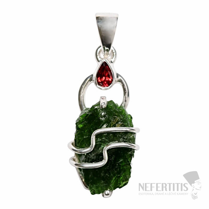 Beautiful designer silver pendant with raw chrome diopside and cut garnet . Ag 925. You are purchasing the jewelry pictured directly.