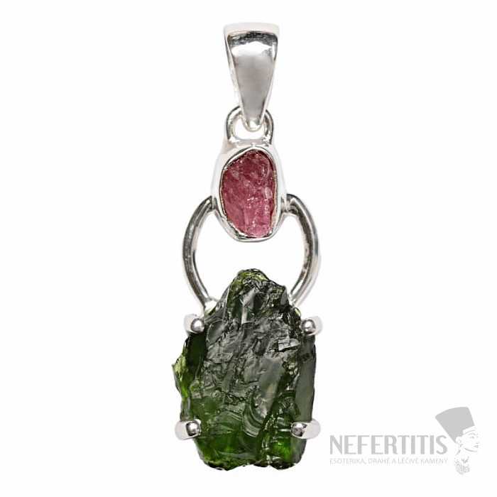Beautiful designer silver pendant with raw chrome diopside and pink tourmaline . Ag 925. You are purchasing the jewelry pictured directly.