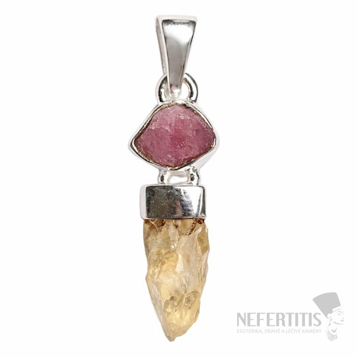 Beautiful designer silver pendant with raw citrine and pink tourmaline . Ag 925. You are purchasing the jewelry pictured directly.