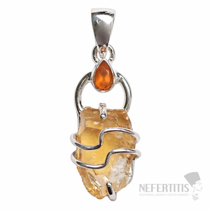 Beautiful designer silver pendant with raw citrine and cut carnelian . Ag 925. You are purchasing the jewelry pictured directly.