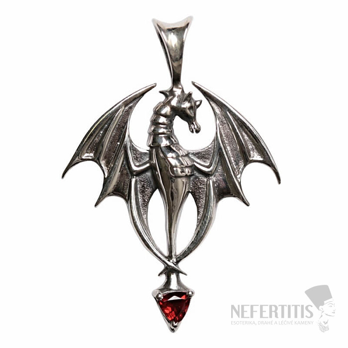 Beautiful designer silver pendant in the shape of a dragon with a cut garnet. Ag 925. You are purchasing the jewelry pictured directly.