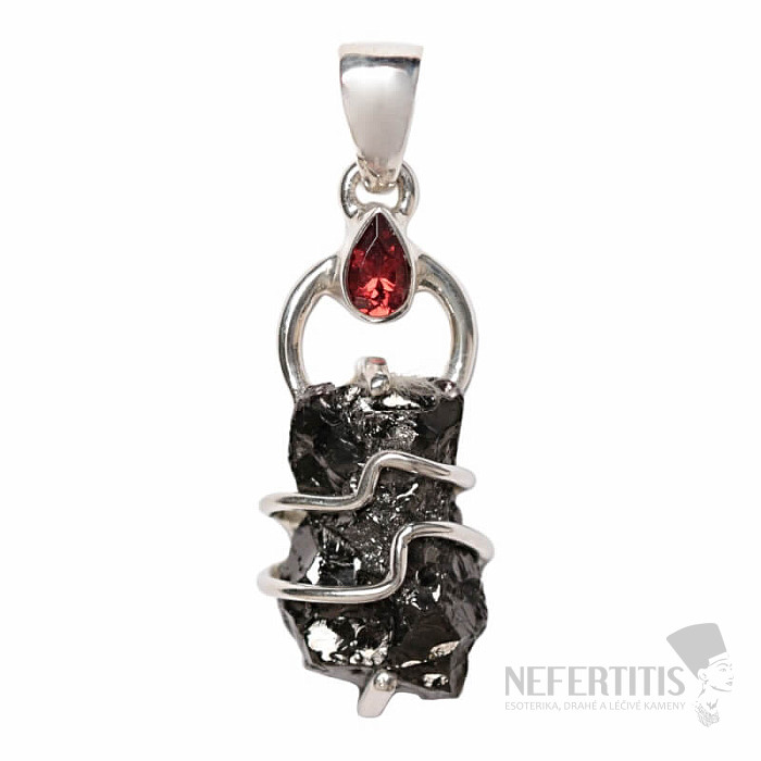 Beautiful designer silver pendant with raw hematite and cut garnet . Ag 925. You are purchasing the jewelry pictured directly.