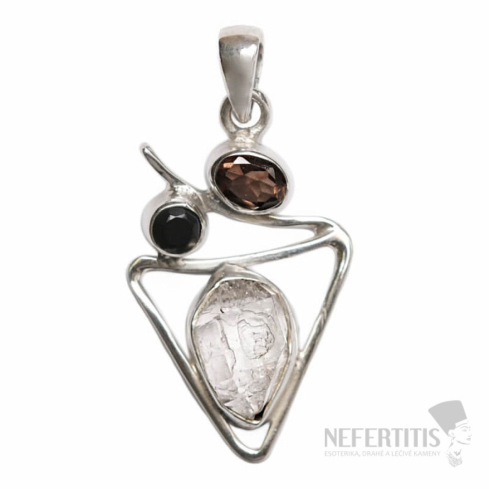 Beautiful designer silver pendant with Herkimer diamond, cut brown and cut onyx . Ag 925. You are purchasing the jewelry shown directly.