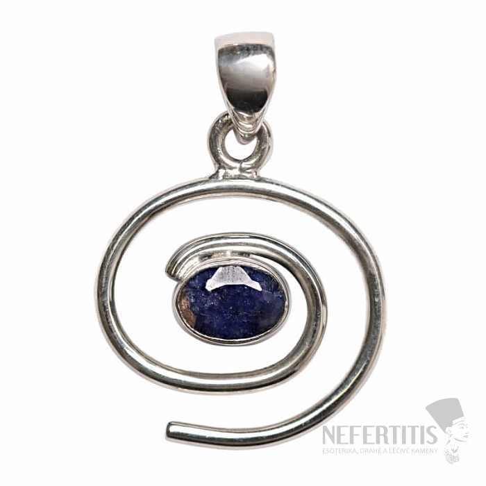 Beautiful designer silver pendant with blue cut Indian sapphire. Ag 925. Indian sapphire is a trade name for a natural stone, most often sillimanite or corundum, artificially dyed to the color of sapphire. It is therefore not a natural sapphire. You are buying the jewelry shown directly.