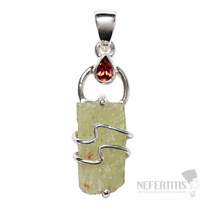 Beautiful designer silver pendant with rare green kyanite and cut garnet . Ag 925. You are purchasing the jewelry pictured directly.