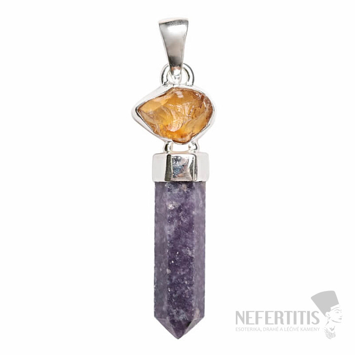 Beautiful designer silver pendant with lepidolite crystal and raw citrine. Ag 925. You are purchasing the jewelry pictured directly.