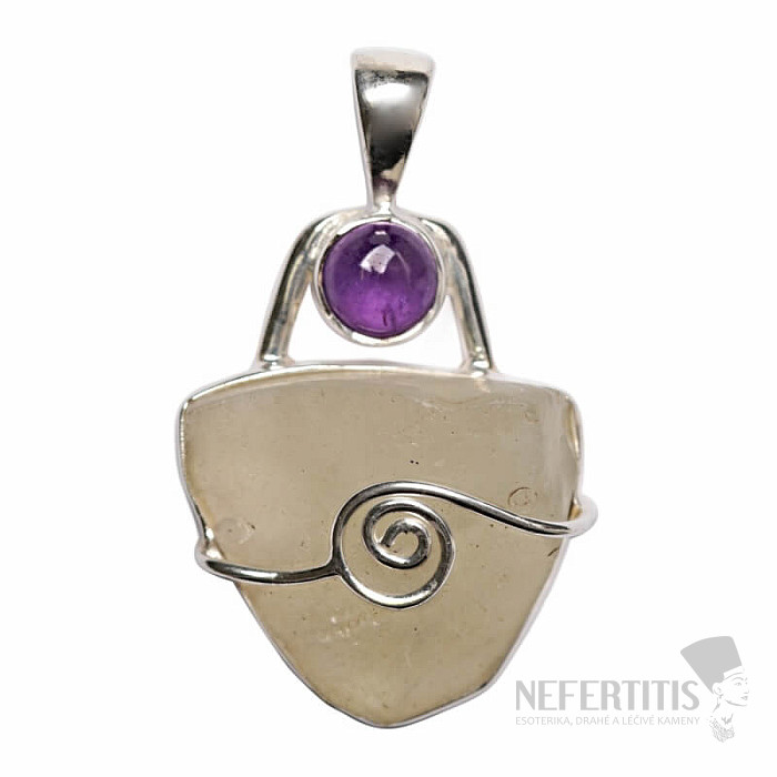 Beautiful designer silver pendant with unique Libyan desert glass and amethyst cabochon . Ag 925. You are purchasing the jewelry pictured directly. Libyan desert glass or also the glass of the Great Sand Sea is a… more »