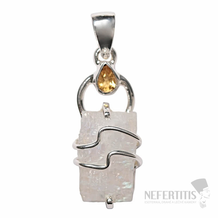 Beautiful designer silver pendant with raw moonstone and cut citrine. Ag 925. A distinctive piece of jewelry that will charm everyone and no one will miss it on you. You are buying the exact piece of jewelry pictured.
