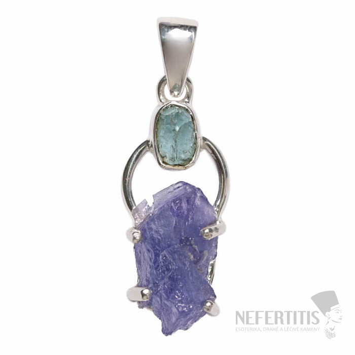 Beautiful designer silver pendant with raw tanzanite and aquamarine. Ag 925. You are purchasing the jewelry pictured.